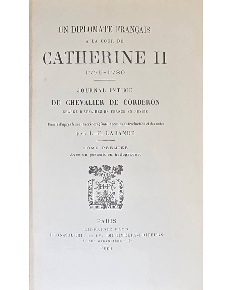 Un diplomate français à la Cour de Catherine II. 1775-1780. Journal intime du Chevalier de Corberon, chargé d'affaires de France en Russie. Publié d'après le manuscrit original avec une introduction et des notes