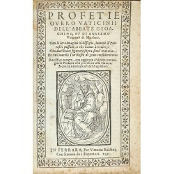 Profetie overo vaticinii dell’abbate Gioachino, et di Ancelmo Vescovo di Marsico, con le loro imagini in dissegno intorno à Pontefici passati e che hanno à venire. Con due Ruote figurate sopra simil materia et un oracolo Turchesco di gran consideratione.