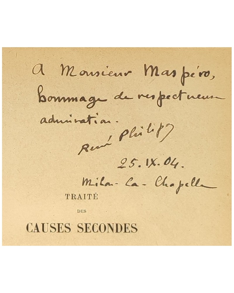 Exemplaire enrichi d’un envoi autographe signé de René Philipon à « Monsieur Maspero, hommage de respectueuse admiration… 25. IX. 04 Milon-la-Chapelle »
