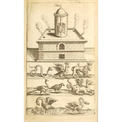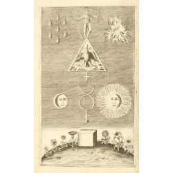 Suit une évocation de la matière première par un « dragon envenimé » posé sur une sphère ailée qui supporte un androgyne brandissant l'équerre et le compas.