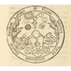 Outre le beau frontispice et les douze clefs, le premier texte comporte, au bas du dernier feuillet de l’avant-propos la très symbolique figure décrite par Eugène Canseliet dans son « Alchimie expliquée sur ses textes classiques », chapitre VIII, Conjonction et séparation.