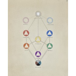 50 pages sur parchemin, dont une planche représentant un arbre séphirotique en couleurs par F.R.W., 10 planches colorées à la gouache (tableaux de Loring). Nom du disciple, le Dr André Marréaud, calligraphié à l’entrée du volume.