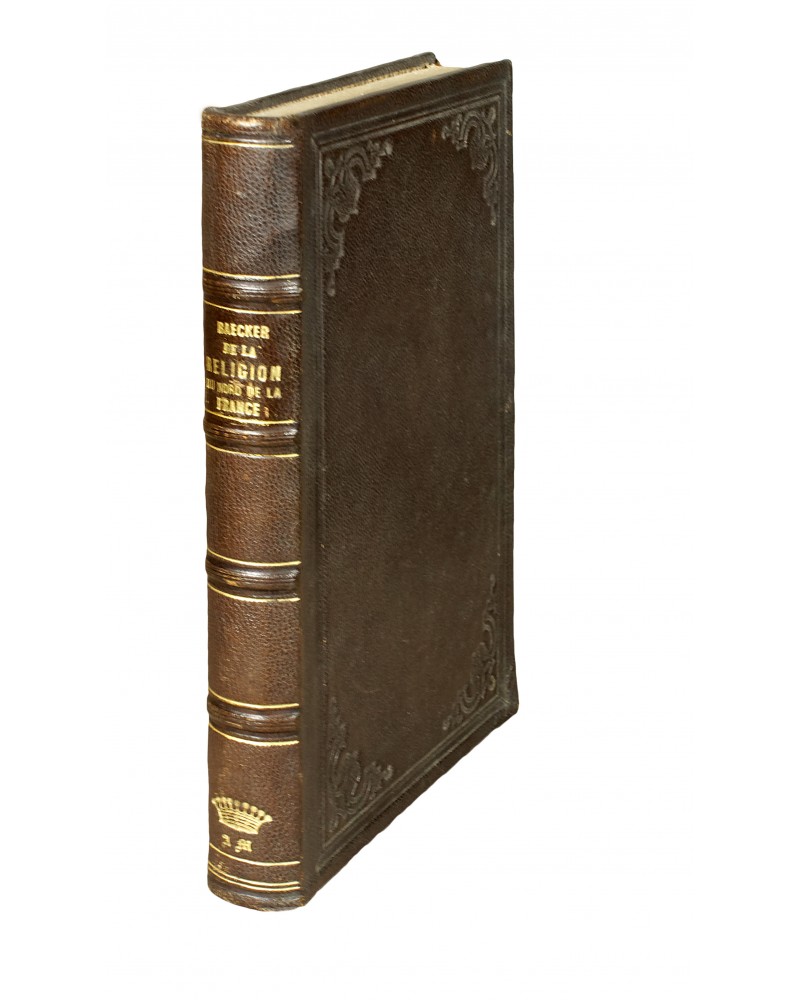 Lille, Ernest Vanackere, 1854, in-8, pleine basane brune chagrinée de l’époque, avec motifs à froid sur les plats, dos à nerfs, orné, couronne de comte dorée en queue, assortie des initiales A.M., toutes tranches marbrées, XVI, 354 pp.