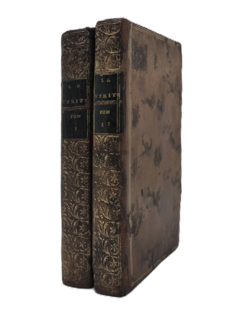 Londres, 1775, 2 volumes in-8, pleine basane racinée de l’époque, dos lisse, orné, tranches rouges, triple filet d’encadrement sur les plats, XIV, 432 ; IV, 404 pp. Les reliures comportent des traces d’usure avec les dos lég. craquelés et un infime manque à la coiffe du T. I.