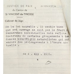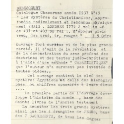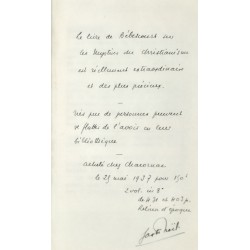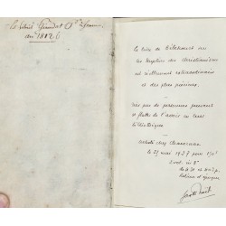 Ex-Libris manuscrit : Girardot d’Asemur, 1812. Une page manuscrite reliée en avant du volume : « Le livre de Bébescourt sur les mystères du christianisme est réellement extraordinaire et des plus précieux... Acheté chez Chacornac le 25 mai 1937 pour 150 f. … Jost Noël ». La notice de Chacornac reproduite (dactylographiée), insérée ensuite, à en-tête de la Justice de Paix du Canton de St Vincent-de-Tyrosse, Cabinet du Juge, datée « ce 4. III. 1935 » et signée.