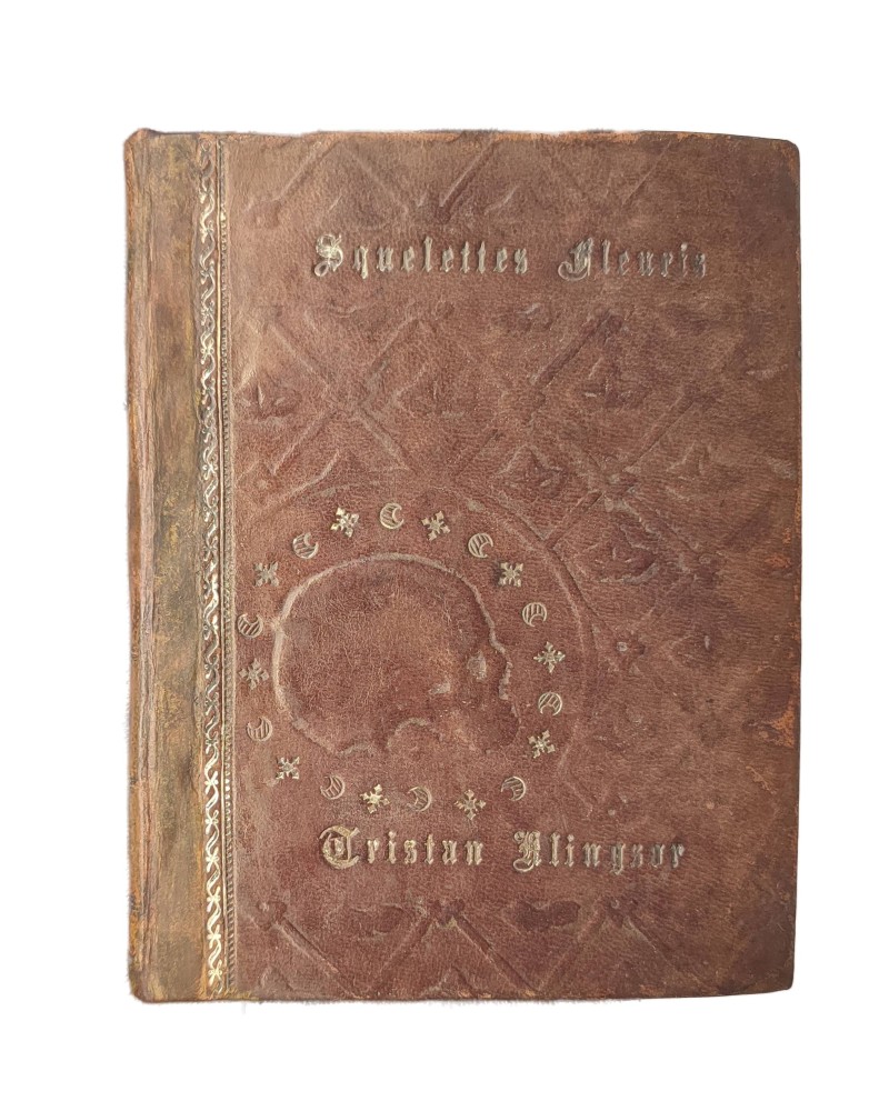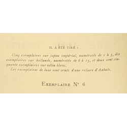 Un des 10 exemplaires numérotés sur Hollande (ici le n° 6), seul tirage de tête après 5 Japon, qui sont reliés avec la célèbre reliure macabre d’Aabals qui fit sensation au sixième salon de la Rose-Croix. Infimes restaurations aux coiffes.