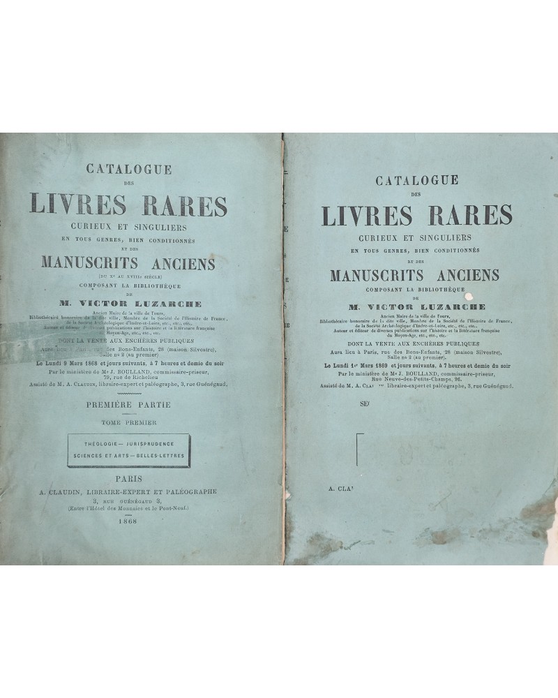 Catalogue des livres rares, curieux et singuliers en tous genres, bien conditionnés et des manuscrits anciens composant la Bibliothèque de M. Victor Luzarche