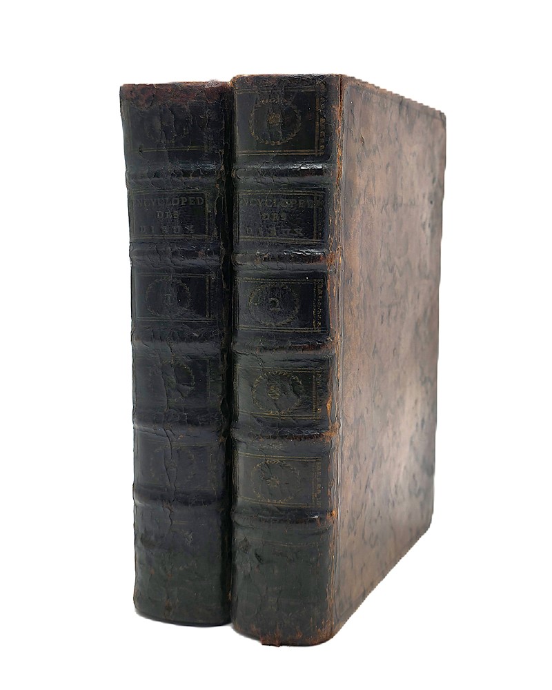 A Paris, Chez la Veuve Duchesne et chez Pissot, 1773, 2 forts volumes in-8, pleine basane brune très sombre de l'époque, dos à nerfs, pièces de titre et de tomaison, VIII, 584 ; 600 pp. Reliure solide, bien que lég. craquelée avec qq. épidermures. Intérieur frais.