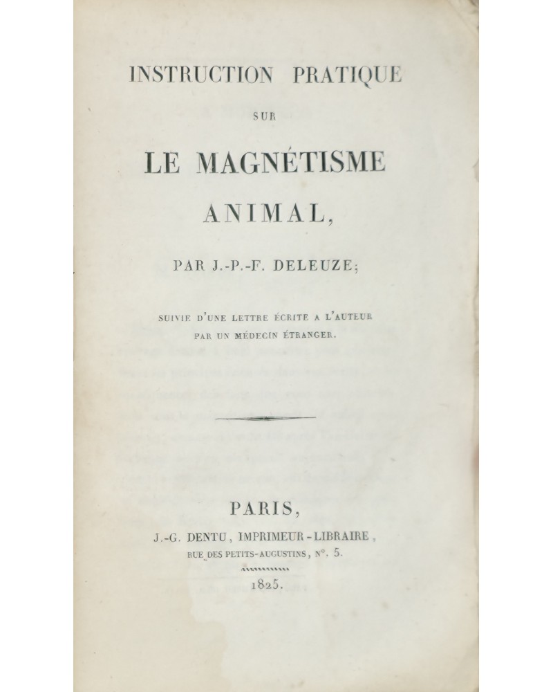 Edition originale. Pierre Dujols, cat. XI 1910, n° 191 : « Rare. Ouvrage classique et indispensable pour la pratique du magnétisme appliqué à la guérison des diverses maladies. » Dorbon 1129. Caillet 2934.