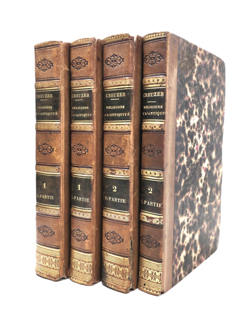 Religions de l’antiquité, considérées principalement dans leurs formes symboliques et mythologiques. Ouvrage traduit de l’allemand, refondu en partie, complété et développé par J.D. Guigniaut. Avec relié à la suite du 4e volume : De la Théogonie d’Hésiode. Dissertation de philosophe ancienne, par J.D. Guignaut
