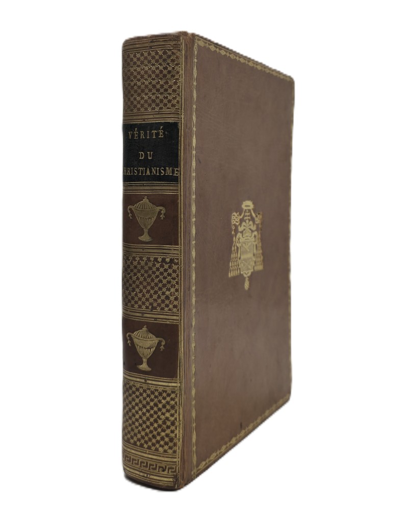 Reliure aux armes du Cardinal Jean-Sifrein Maury, nommé par Napoléon « archevêque » de Paris (d'octobre 1810 à avril 1814) contre l’avis du Pape Pie VII, qui lui écrivit afin de lui ordonner de refuser ce siège et de quitter immédiatement ses fonctions, sous peine des plus graves sanctions canoniques. À la chute de l'empire, il sera exclu de l’Académie Française et banni. Pie VII après lui avoir fait donner l'ordre de se dépouiller des vêtements de la pourpre cardinalice, le fait arrêter et incarcérer, mais reviendra sur l’ensemble de ces décisions moins d’une année après.