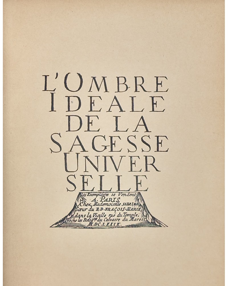 Caillet 9732. Dorbon 4276. Guaita 921 pour l’édition originale : « Ouvrage fort rare de haute mystique et de Kabbale chrétienne composé par le R. P. Sabbathier, berrichon, prédicateur capucin […] L’ombre de la sagesse universelle constitue un traité fort singulier et d’une saveur mystique très personnelle... ».