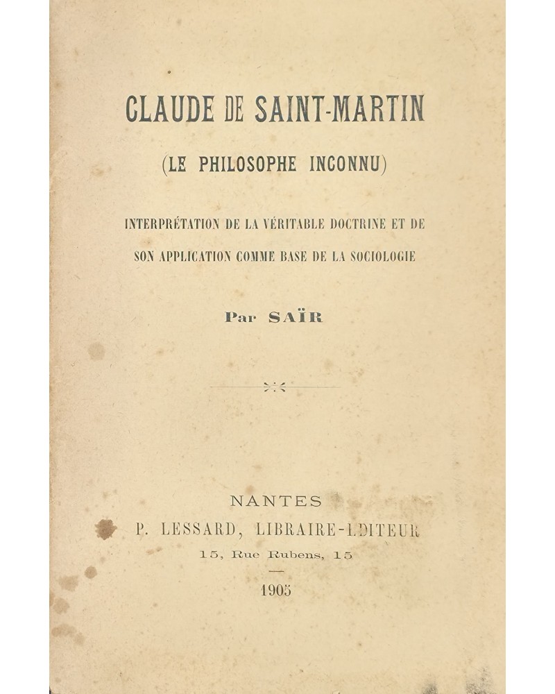 Claude De Saint-Martin (Le philosophe Inconnu). Interprétation de la véritable doctrine et de son application comme base de la sociologie