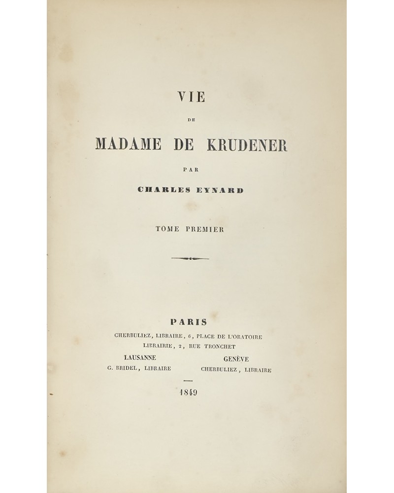 Dujols n° 151, cat. I, 1909 : « (Très rare). Célèbre mystique du XIXe siècle, Mme de Krüdener se crut appelée à régénérer le christianisme. Elle parcourut l'Allemagne en prêchant le retour vers l'égalité primitive, annonçant la fin du monde et une nouvelle Jérusalem. En 1814, elle prit un grand ascendant sur l'empereur Alexandre qu’elle suivit en Russie et où elle gouverna quelque temps avec Madame Bouche, célèbre voyante d’Avignon. »